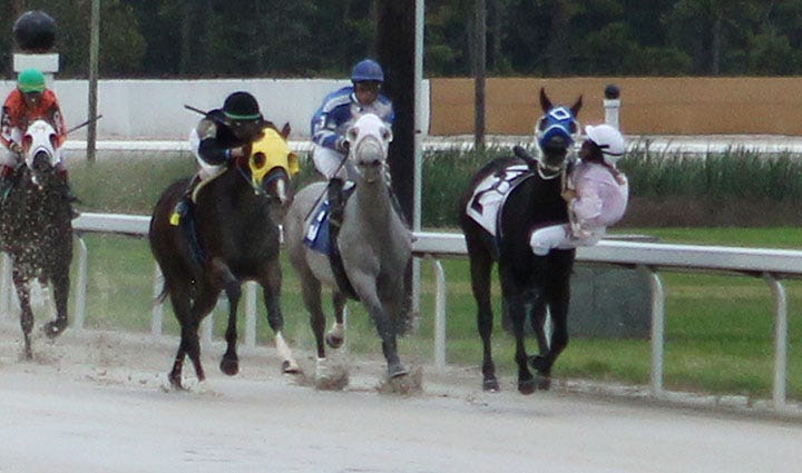 Apprentice jockey Paulina Ramirez and her mount, St Teresa, left those watching a maiden race for 2-year-old fillies last Wednesday at Delta Downs gasping. The pair seemed home free in the stretch drive when St Teresa ducked into the rail, nearly unseating Ramirez. The rider clung to St Teresa’s neck before dramatically swinging back up into the saddle.