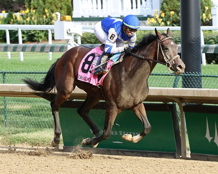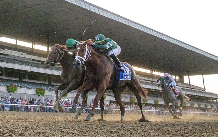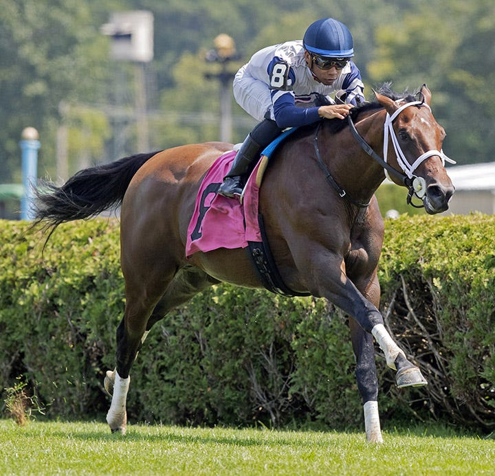 Trainer Carlos Martin wanted one last serious move in his Grade 1-winning mare, so he put a lead horse, the 4-year-old New York-bred mare Stonefactor, out eight or so lengths ahead of Come Dancing who broke running at the five-eighths pole under Javier Castellano.