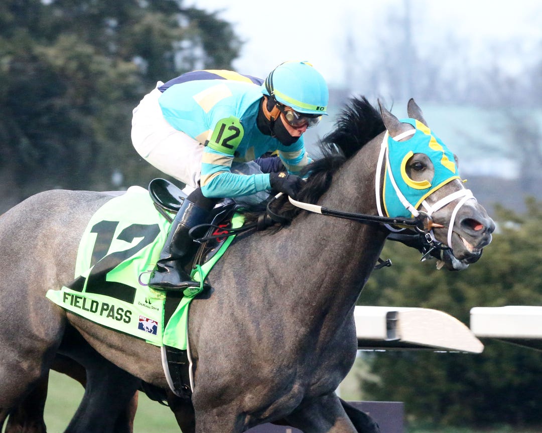 Nadal withstood significant pace pressure for a three-quarter length win, picking up 50 points for the Kentucky Derby. The start was his first at two turns, his first on a wet track, and his first outside of his base of Southern California. He earned a Beyer Speed Figure of 96.
