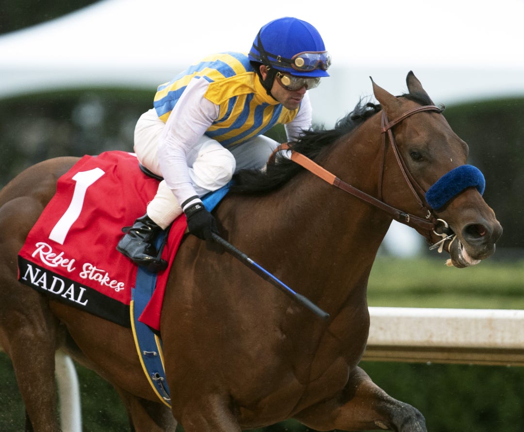 Nadal cleared three important hurdles Saturday at Oaklawn Park when he won the Grade 2, $1 million Rebel Stakes. The undefeated colt won on a wet track for the first time. He won at two turns for the first time. And he picked up his first points for the Kentucky Derby.