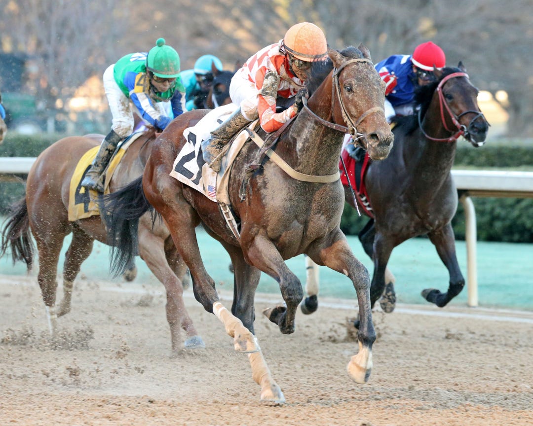 Majesto, based in Florida with trainer Gustavo Delgado, won a two-turn dirt maiden race at Gulfstream on Feb. 27 in his fifth start and will be a longshot if he indeed comes for the $1 million Louisiana Derby.