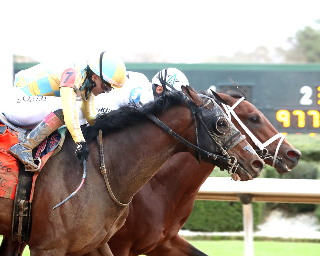 Commandment, who edged Chief Wallabee by a neck in the Fountain of Youth, won for the third straight time and both horses earned triple-digit Beyer Speed Figures (101-100). Commandment and Chief Wallabee, the latter making just his second career start in the Fountain of Youth, are now co-second choices on David Aragona’s line at 8-1. A rematch is likely in the Grade 1 Florida Derby, and won’t that be fun if it happens?