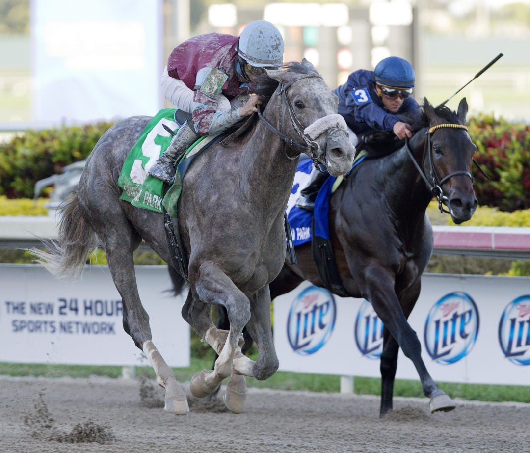 HALLANDALE BEACH, Fla. - Trainer Nick Zito didn’t have a top 3-year-old in his barn this winter. So he went out and bought Spot, who returned quick dividends for his new connections when he rallied to an impressive 2 1/2-length victory over 2-5 favorite No Nay Never in Saturday’s $200,000 Swale Stakes at Gulfstream Park.