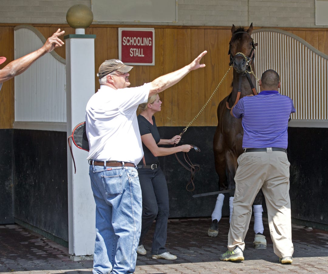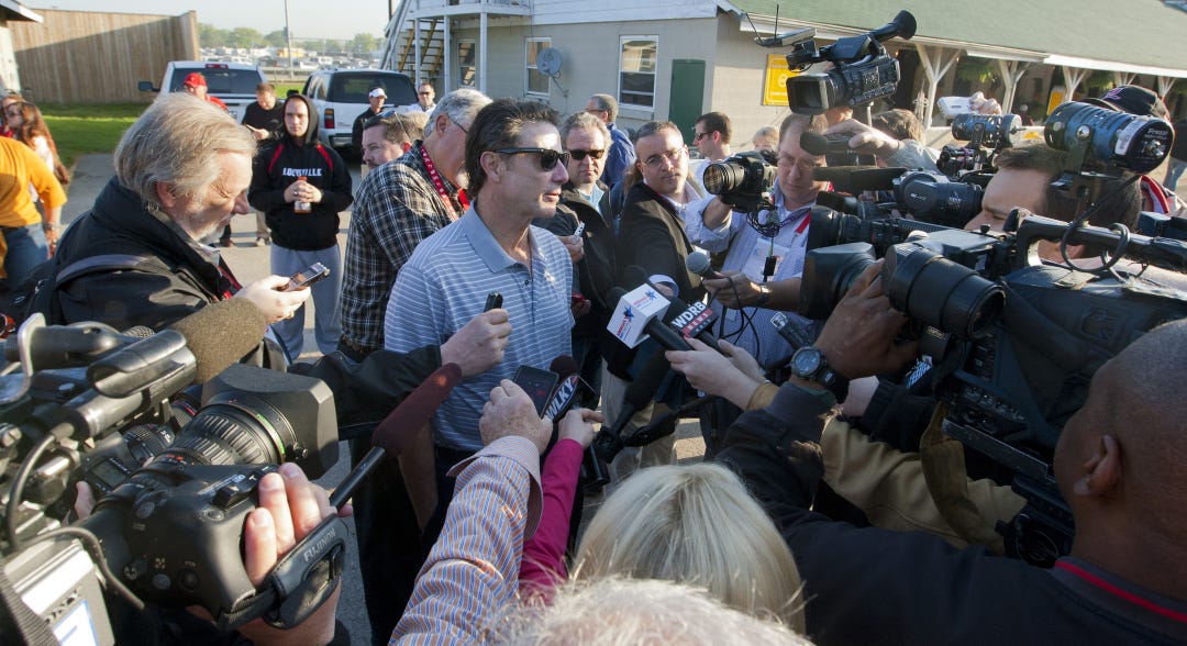 Pitino, who first became enamored with racing during the 1990s when he was the head coach of Kentucky, owns 5 percent of Goldencents, who looked sharp in his morning gallop over Churchill Downs’s main track Wednesday morning.