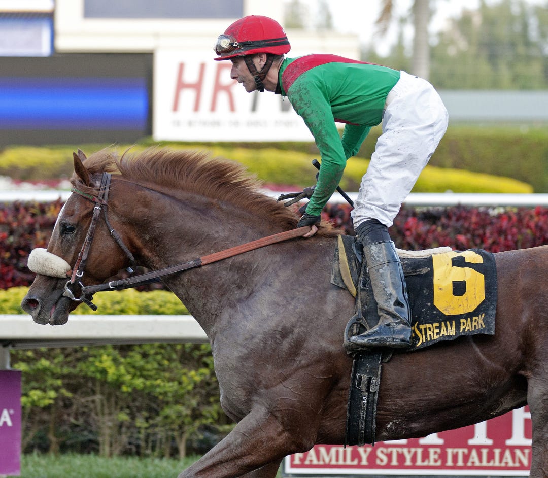 Rosie Napravnik has the call on Pure Fun, a Grade 1-winning filly who will be prepping for a start in the May 3 Kentucky Oaks. She faces a demanding task in the 1 1/16-mile Polytrack race when facing the likes of Winning Cause, Sunbean, Examen, and Cerro.
